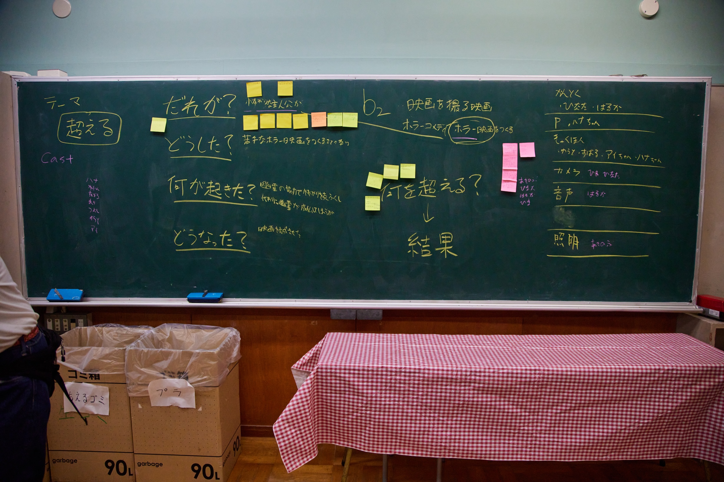 完成したての映画をみんなで鑑賞するために、ポスターを作ったり、上映会場を飾り付けをしたりします。