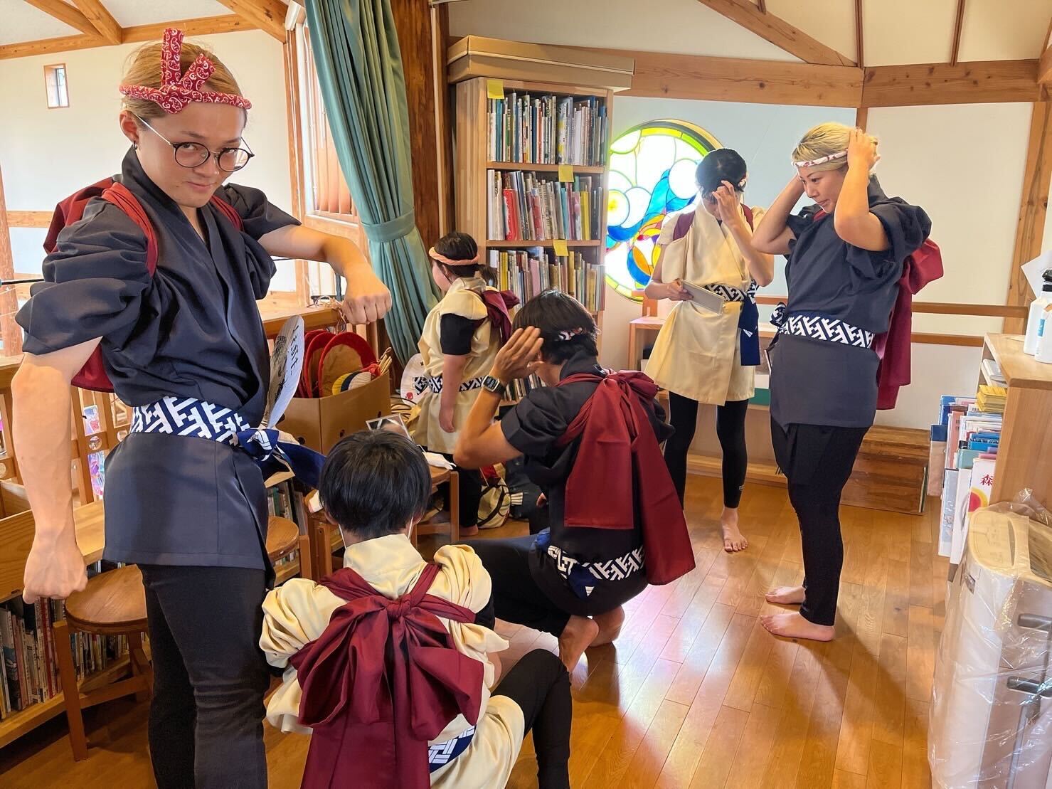 腰を落とすほどかっこいい振り付けはやってみると思った以上に足腰がキツく大変なのですが、途中アドリブも挟んで劇団の子どもたち見事に踊り切りました。