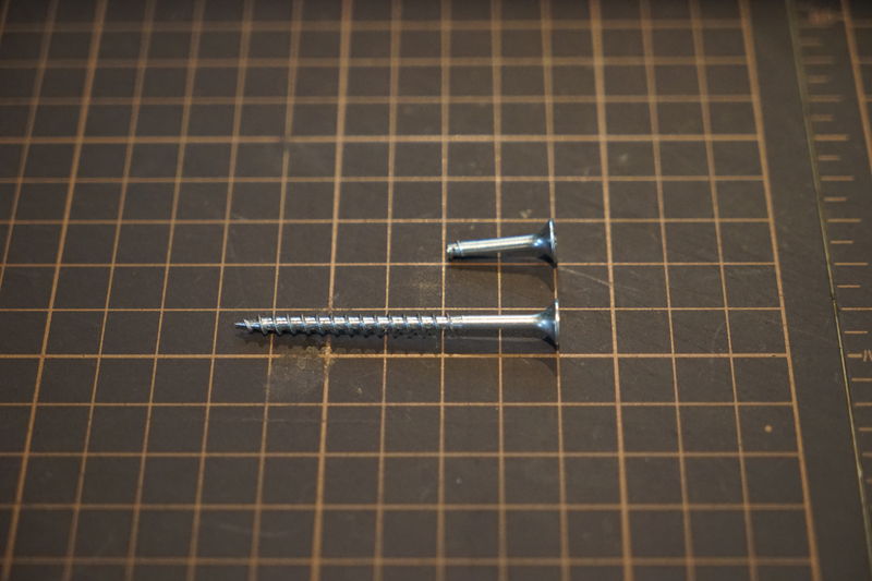 ただし、堅い木が折れるほどの力が加わる部分に細いネジを使うのは強度的にかなり不安なので、コースレッドという引張強度が高め(引っ張られる方向に強い)、かつネジ山が高めのネジを使うことにしました。