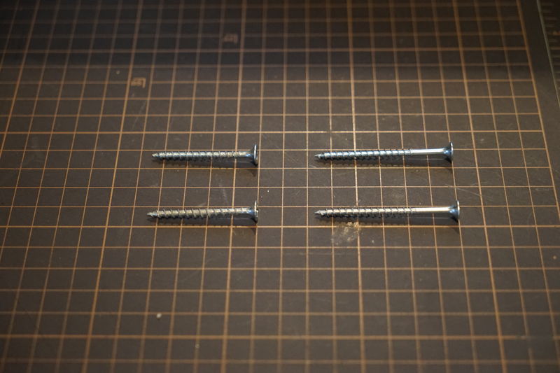 ただし、売られているネジの長さは自由に決められず30mmや48mmといった飛び飛びの値から選ぶしかないので、ギリギリ外に飛び出ない長さと位置を検討して選択しました。