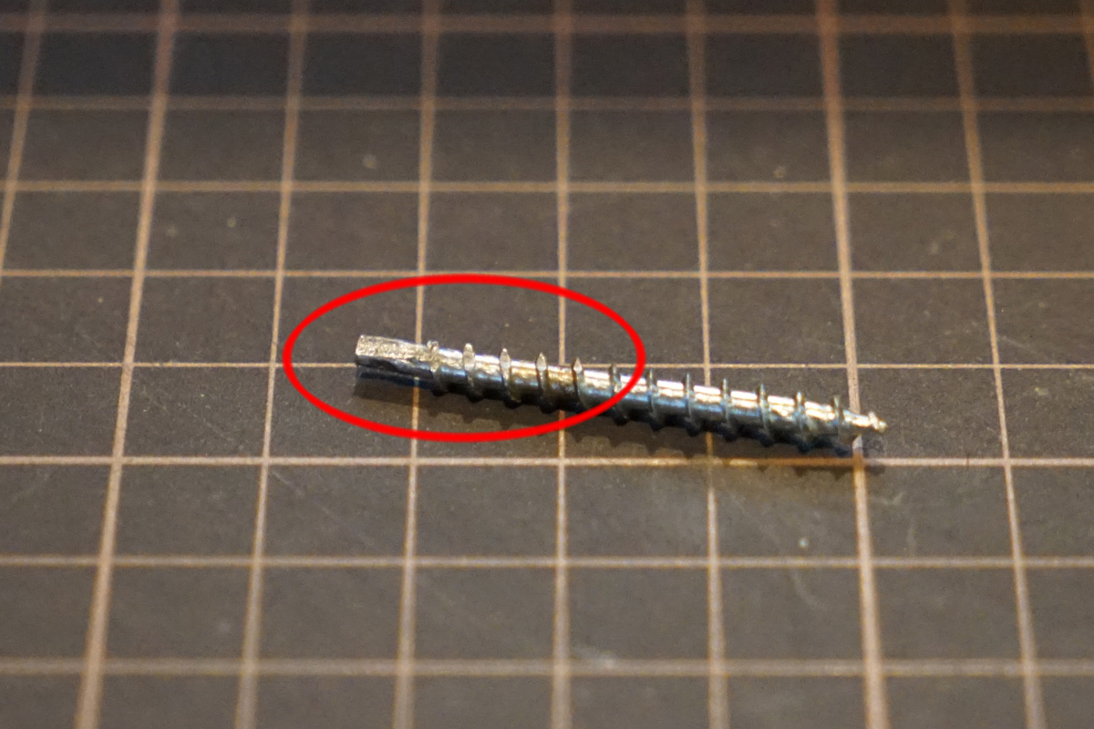 ただし、今回のネジの場合はネジ山の一部を削ることになるので、これで失敗すると元の状態には戻せないため、最悪の場合、成す術がなくなることも覚悟する必要があります。特にネジ山がなくなると掴む部分の直径がさらに小さくなってトルク(回す方向の力)が出せず、完全に折れたネジを外せない状態になることが予想されます。
