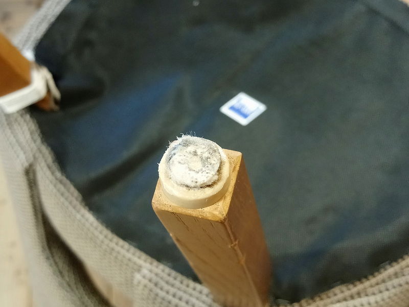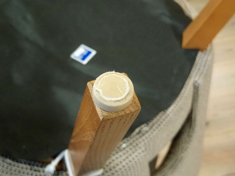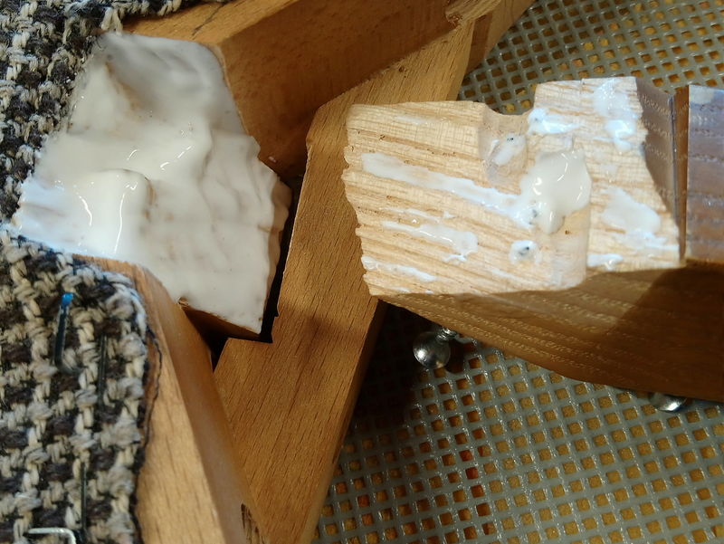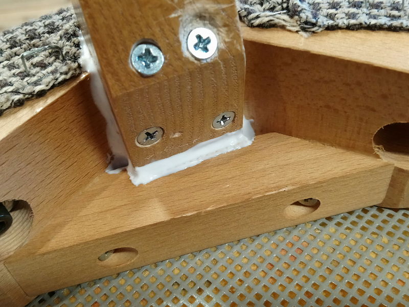 また、座枠や隅木と脚の間に隙間があったので、木の端材を詰め込んだり木工用ボンドを隙間に入れたりして固定しました。