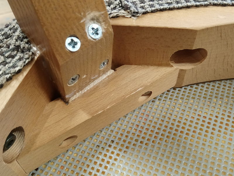 インターネット上を検索してみたところ、椅子を作っている工房などに修理依頼が来ることもあるようで、大半は細いネジと接着剤を使って修理していて、修理の過程が分かる動画がいくつもありました。