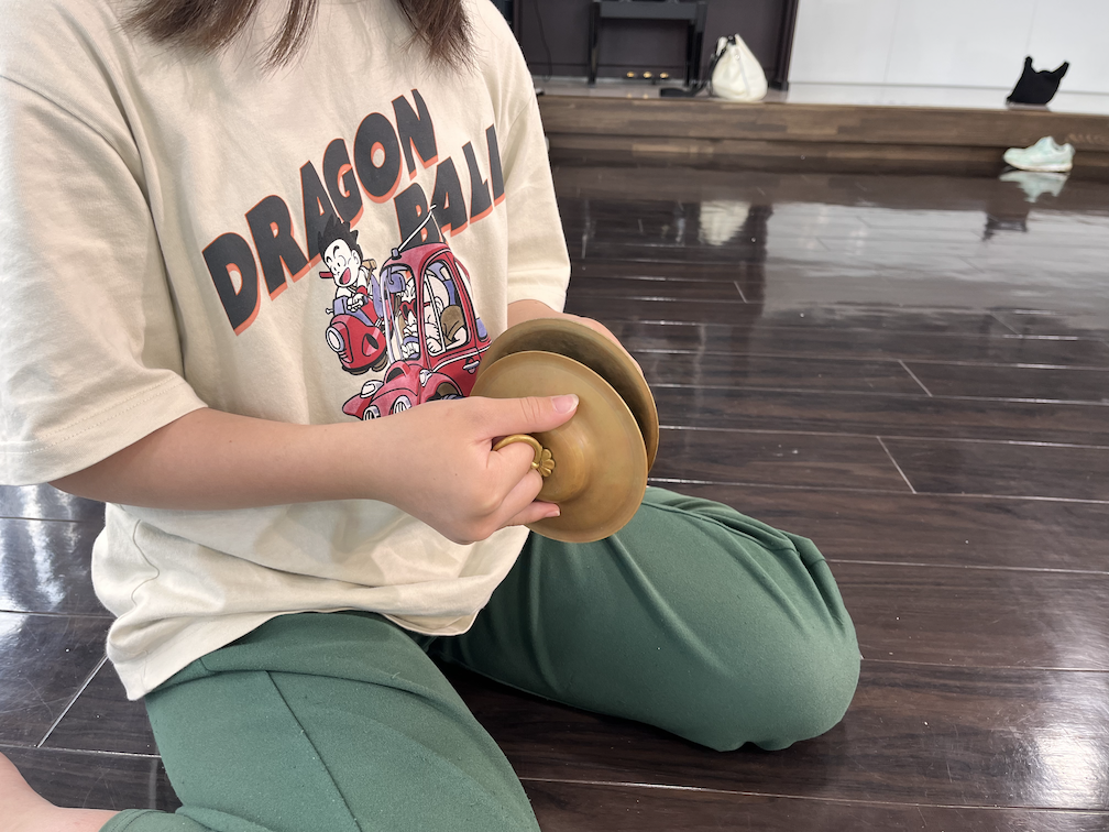 手に持って打ち鳴らすとしゃんとシンバルのような音が。