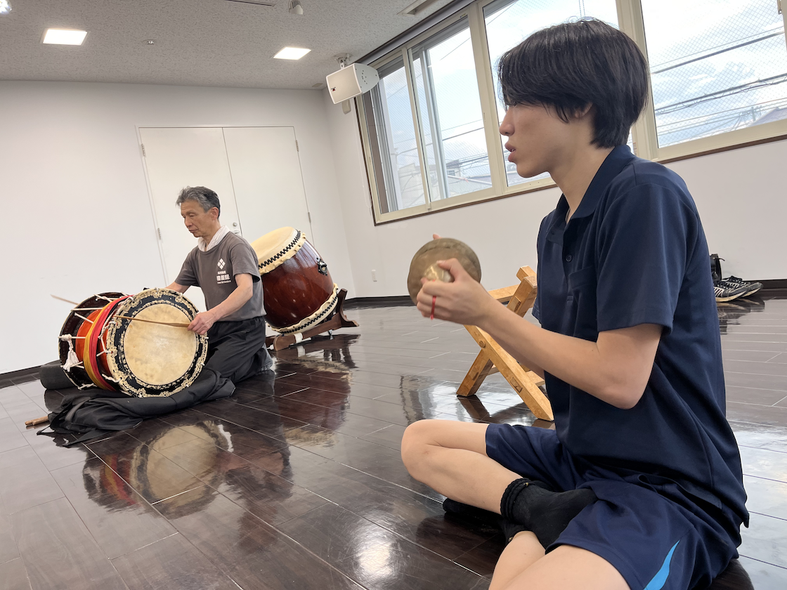 プレクラ劇団では基礎練習として。太鼓の稽古と神楽舞の練習を交互に行っています。
