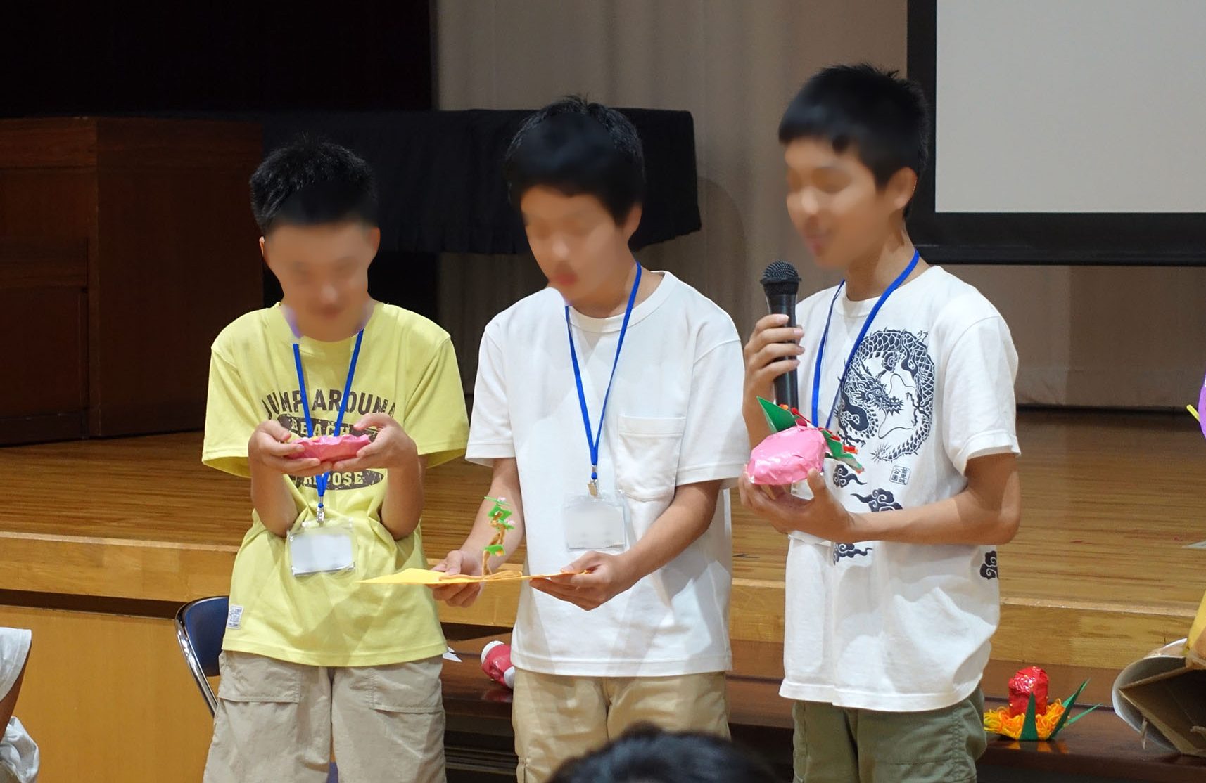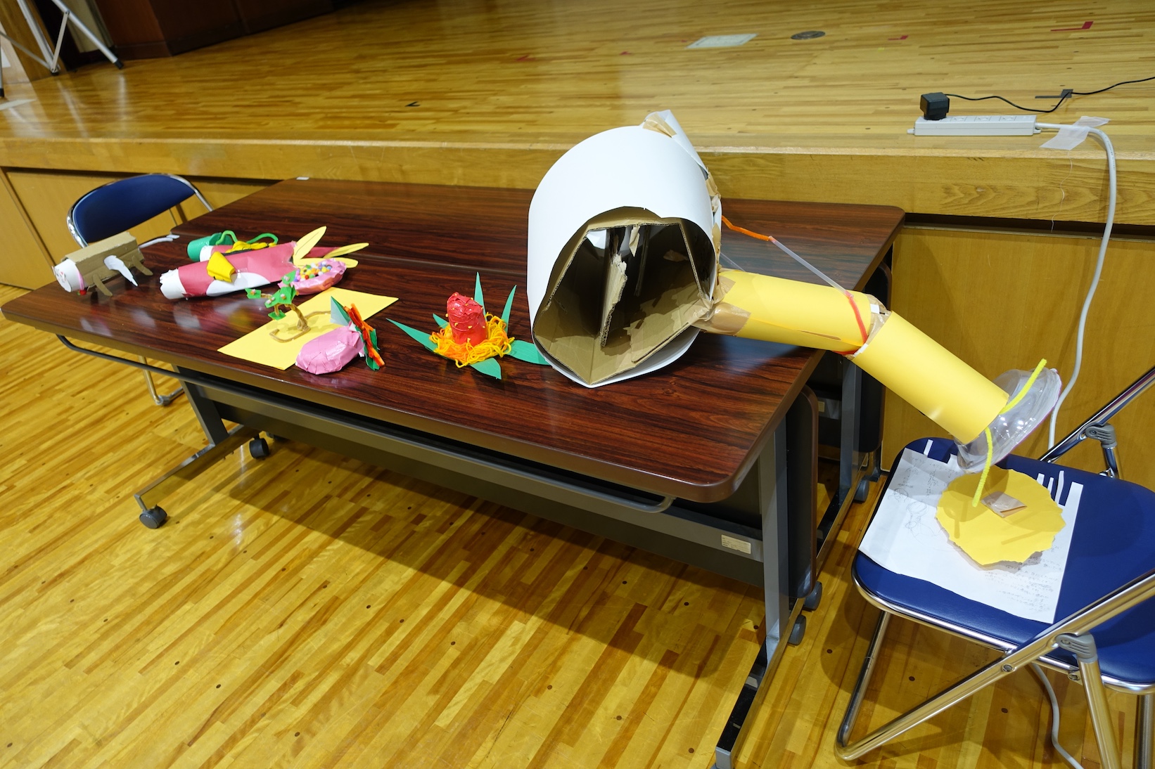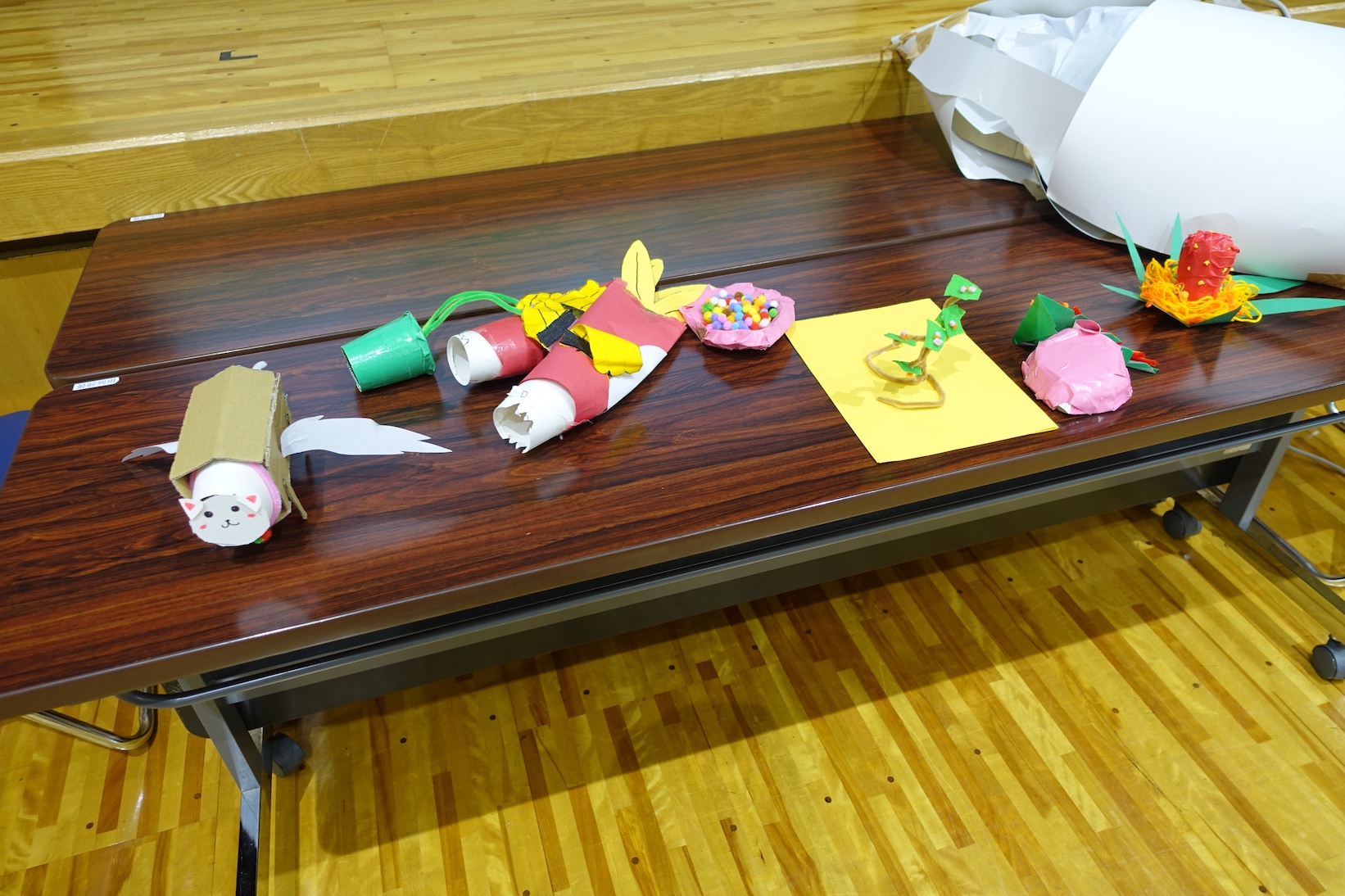 「各班でひいた3つの単語を組み合わせて新種の生物を制作」というテーマで工作を行ってもらいました。