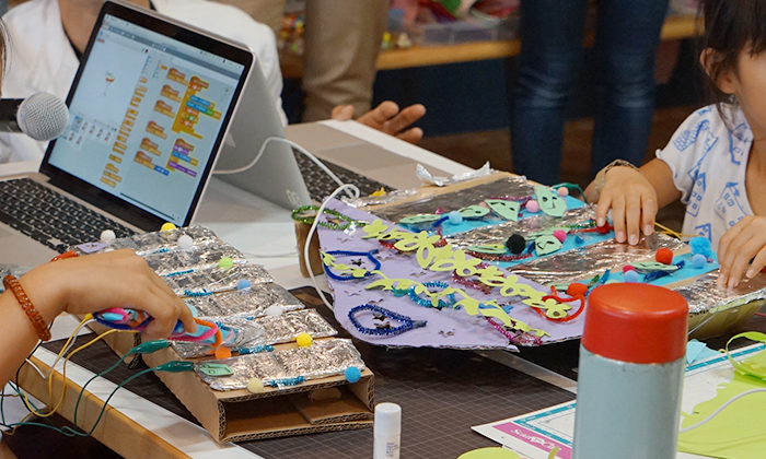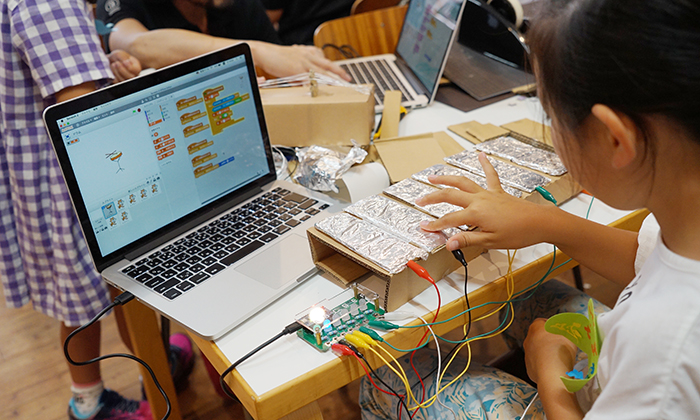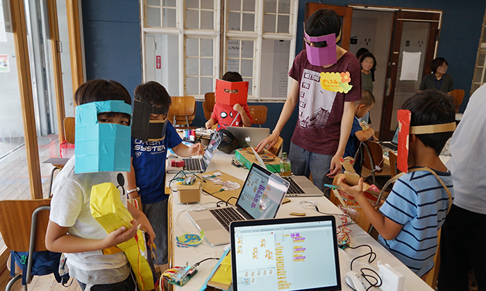 これまで、プログラミングだけのワークショップだと、どうしても小学校高学年からが対象となっていましたが、こうした工作をメインにした場合、低学年のみんなも楽しく参加できます。