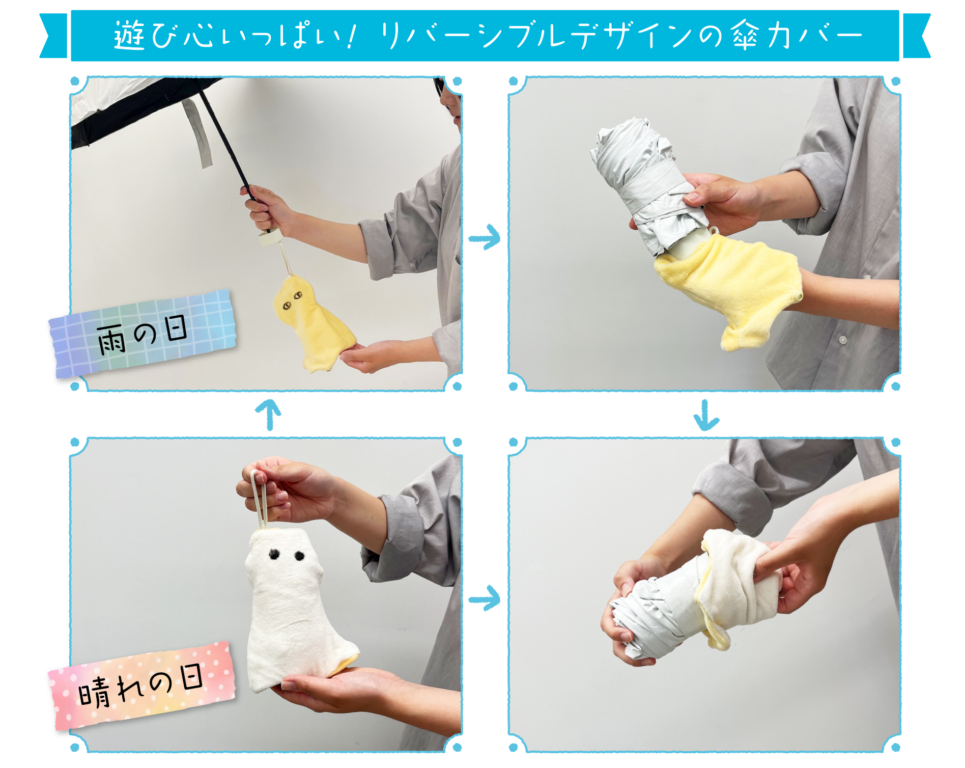 自分だけのてるてる傘カバーを、ぜひ作ってみましょう!
